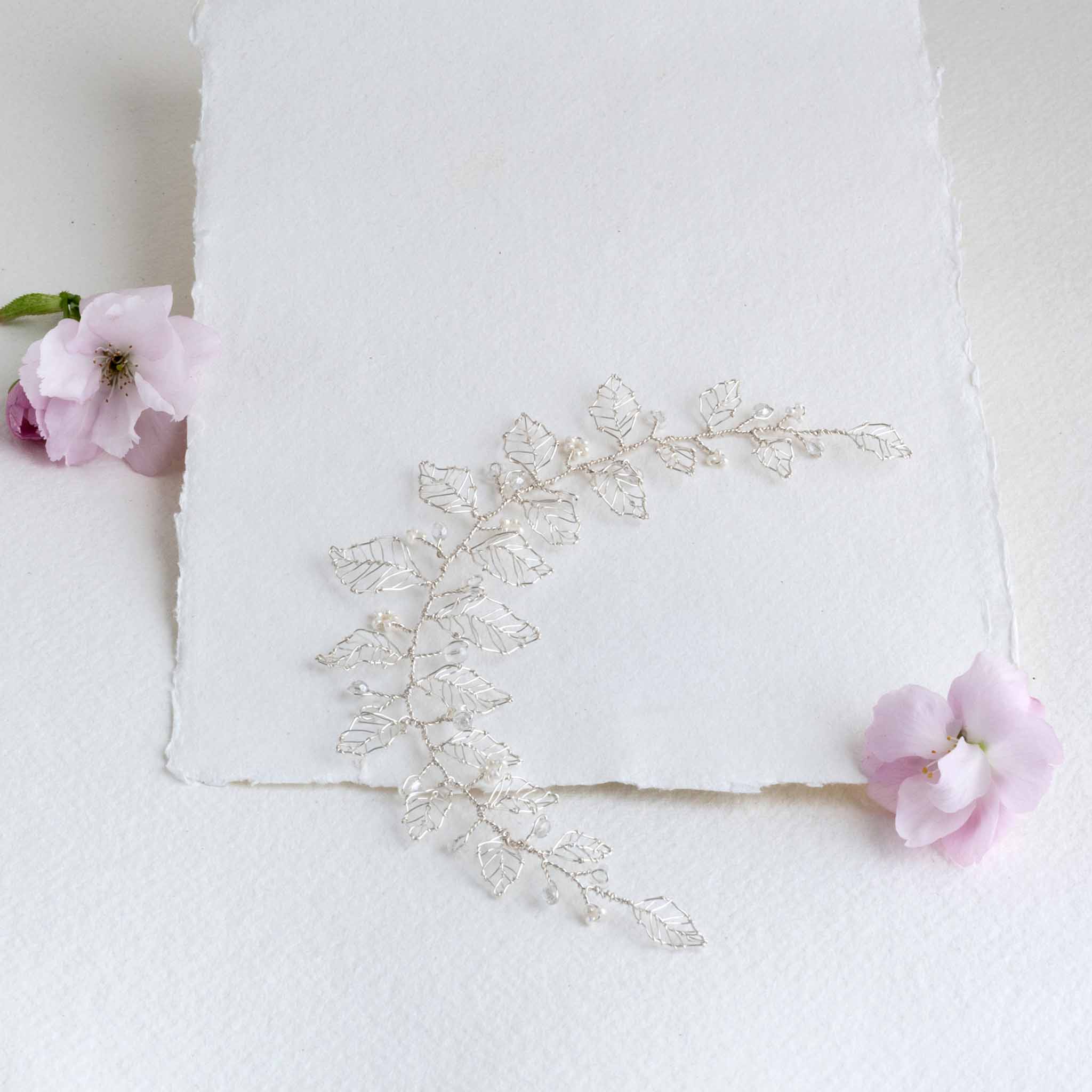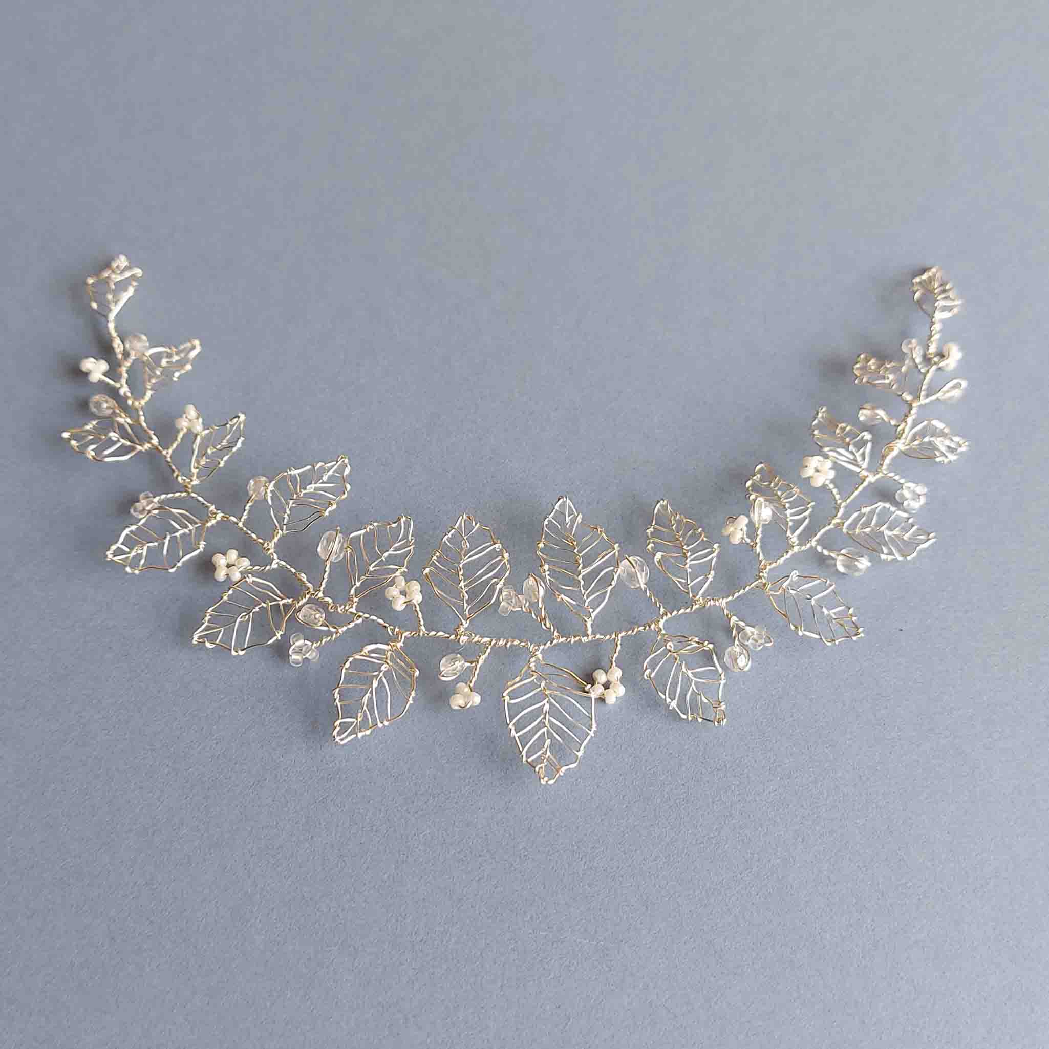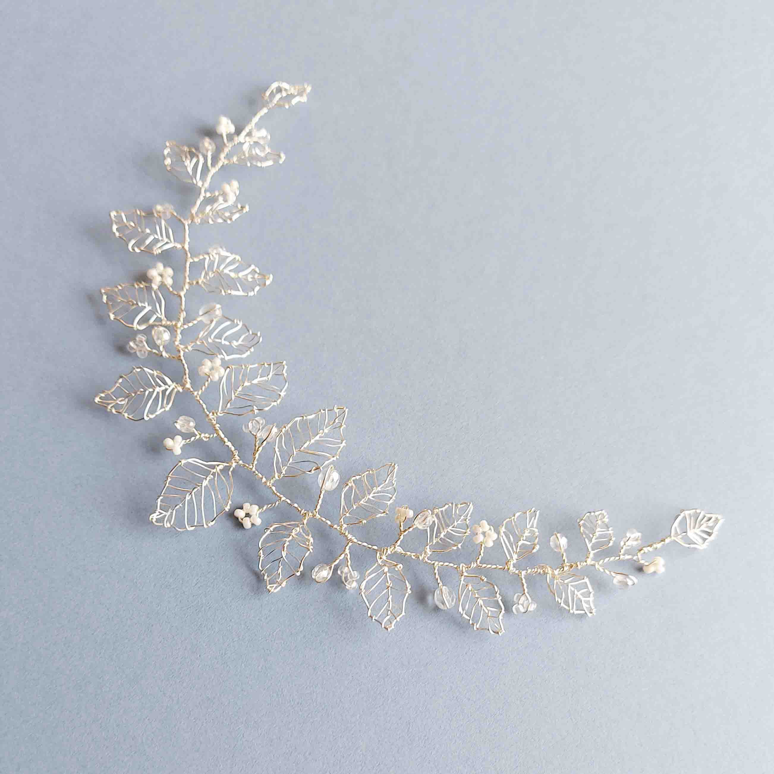 This hair vine can be worn with a variety of hairstyles, pinned at the side of your head with hair up or down, or with hair half up or down, at the back of the head.