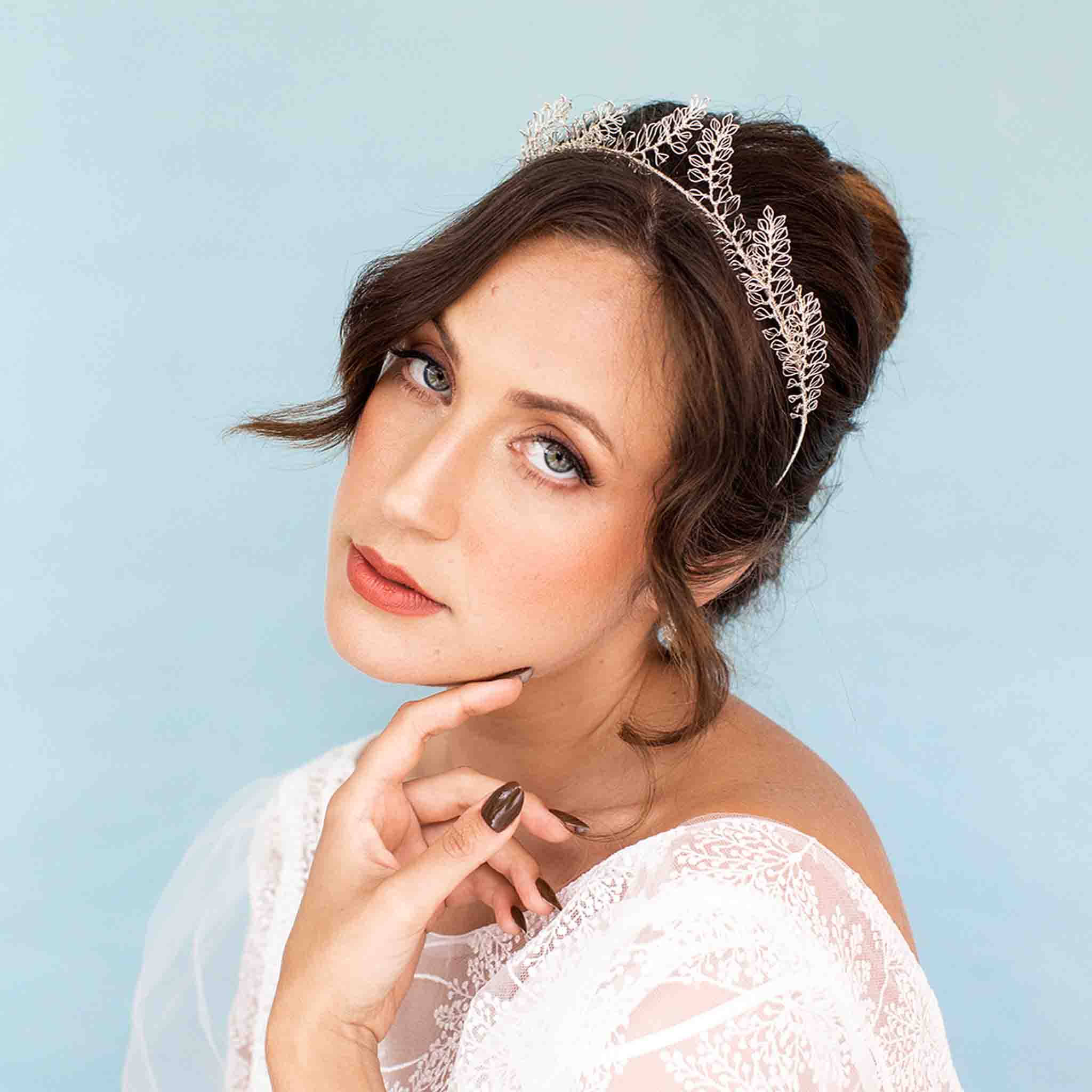 Rosina is delicate bridal crown with exquisite handmade wire leaves. An intricate piece which adds subtle detail to your look.