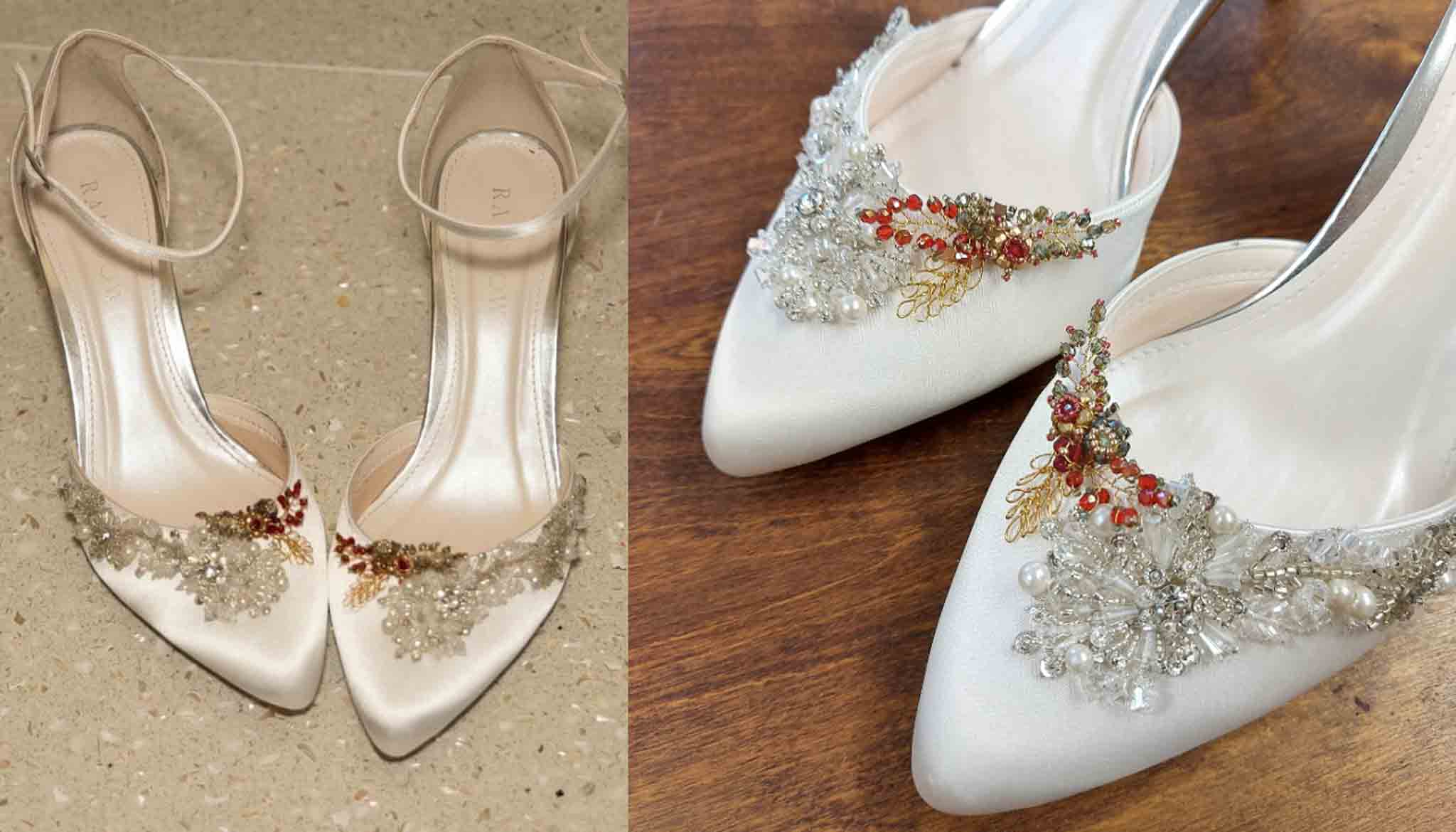 Pictured here are some bespoke beaded shoe clips. Molly wanted to follow her colour theme for her accessories right the way through her look.